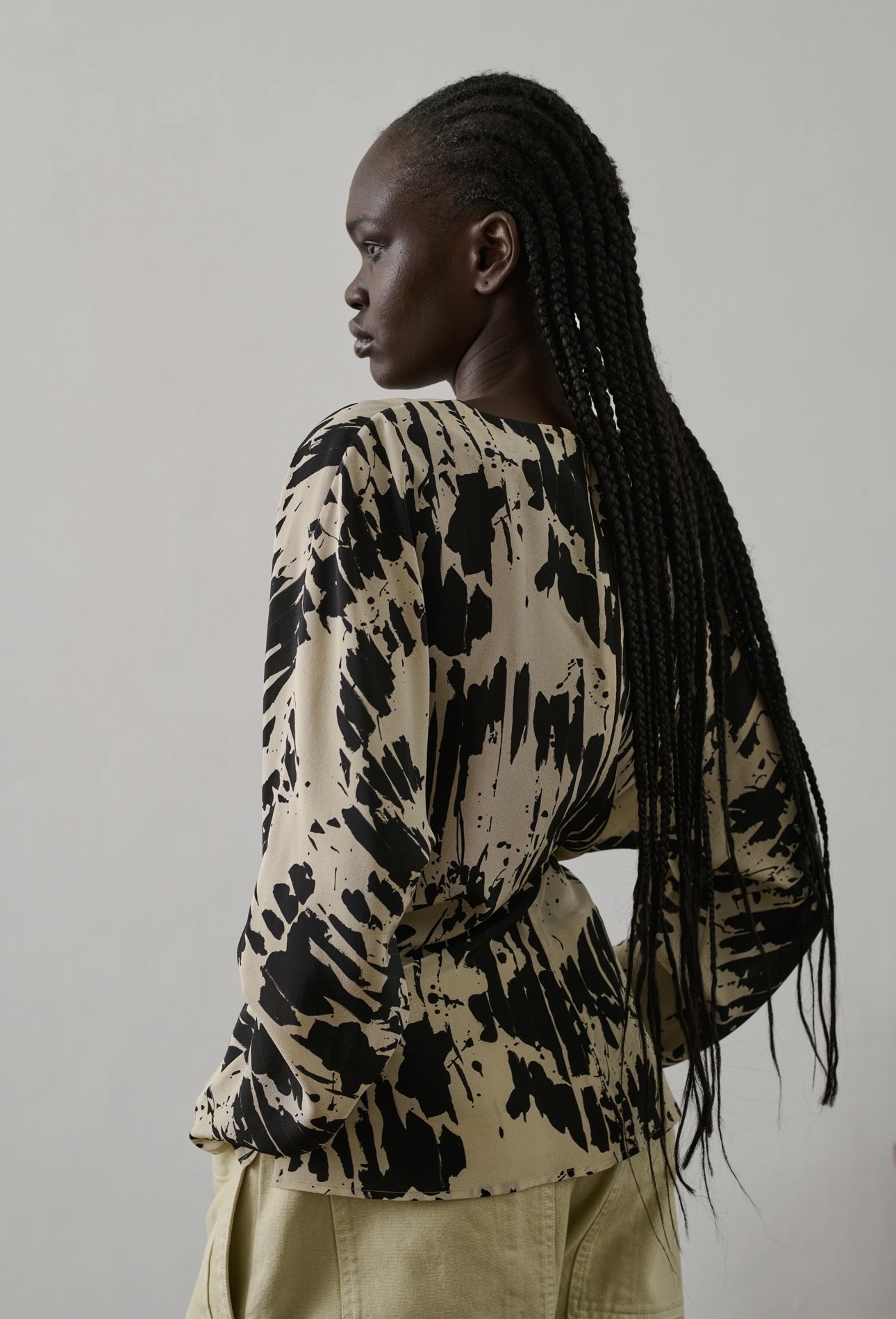 Recomendamos secar la prenda directamente en una percha al aire libre, pero lejos de la luz solar directa para evitar que se decolore. También puede secarla previamente en una toalla para eliminar el exceso de agua, pero no arrugue la blusa o el vestido para no dañar las fibras. En algunos casos también recomendamos la limpieza en seco.