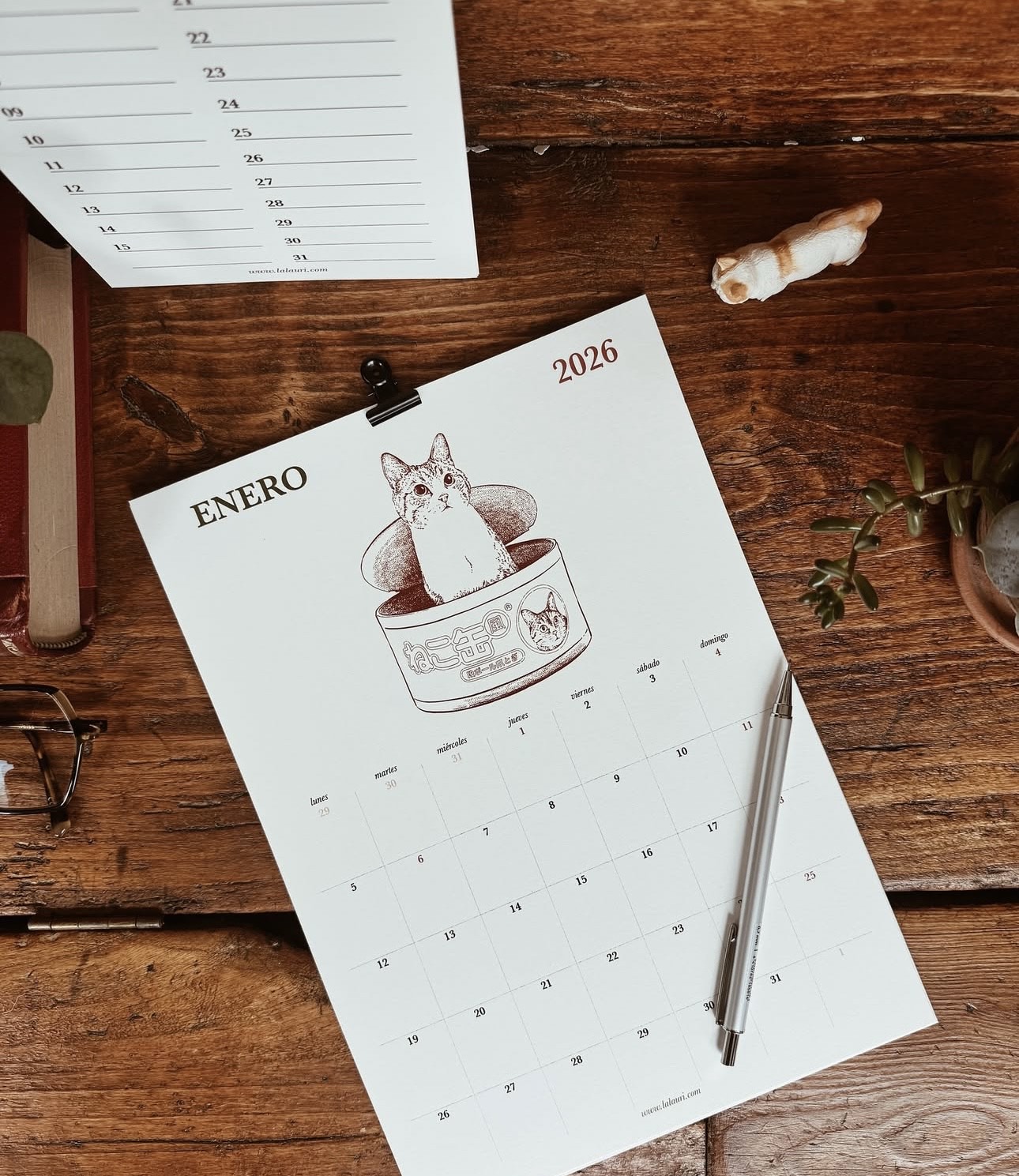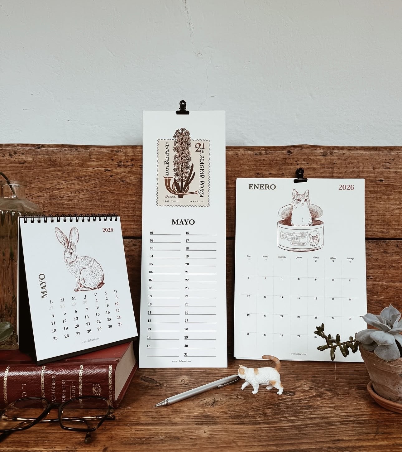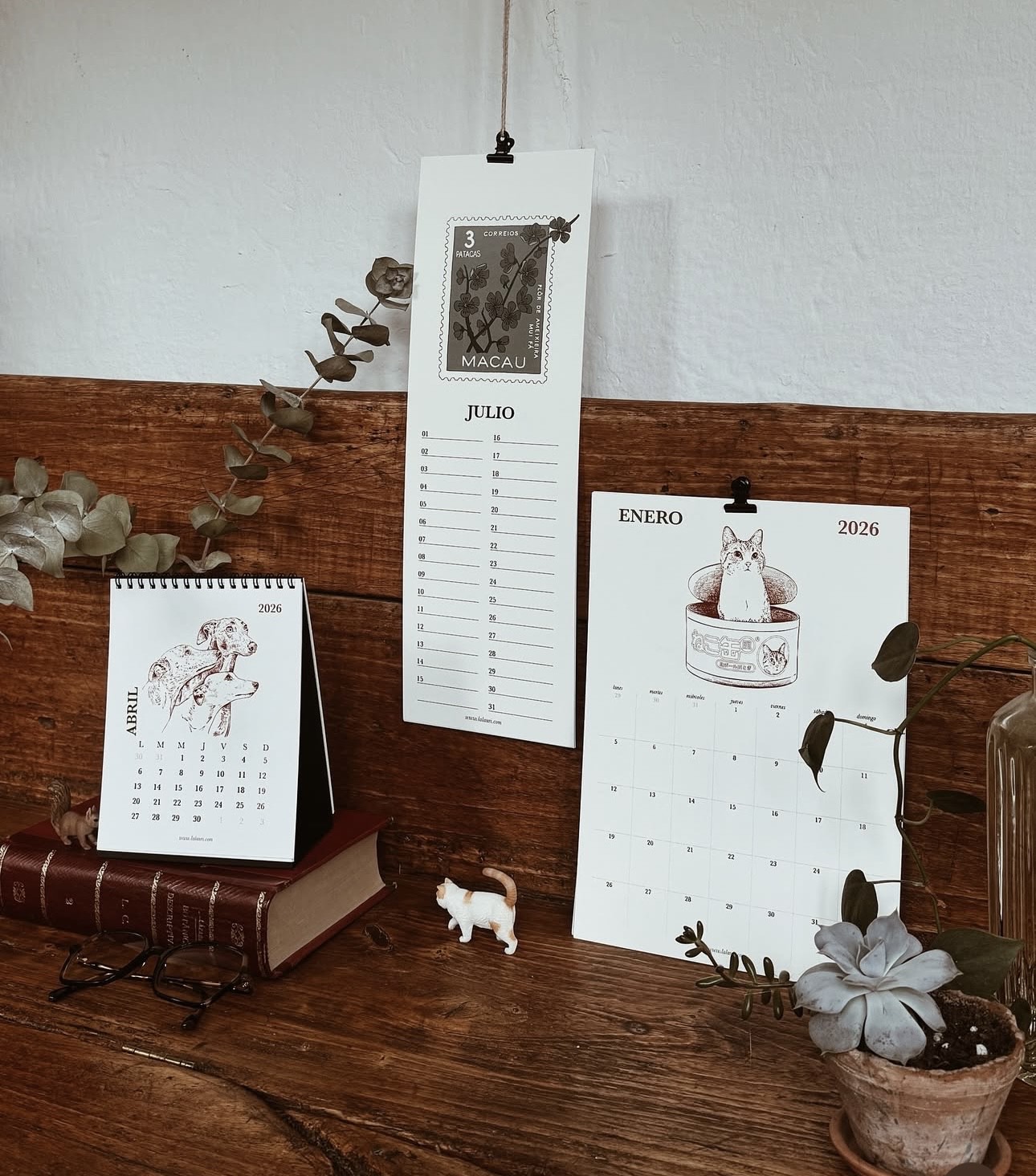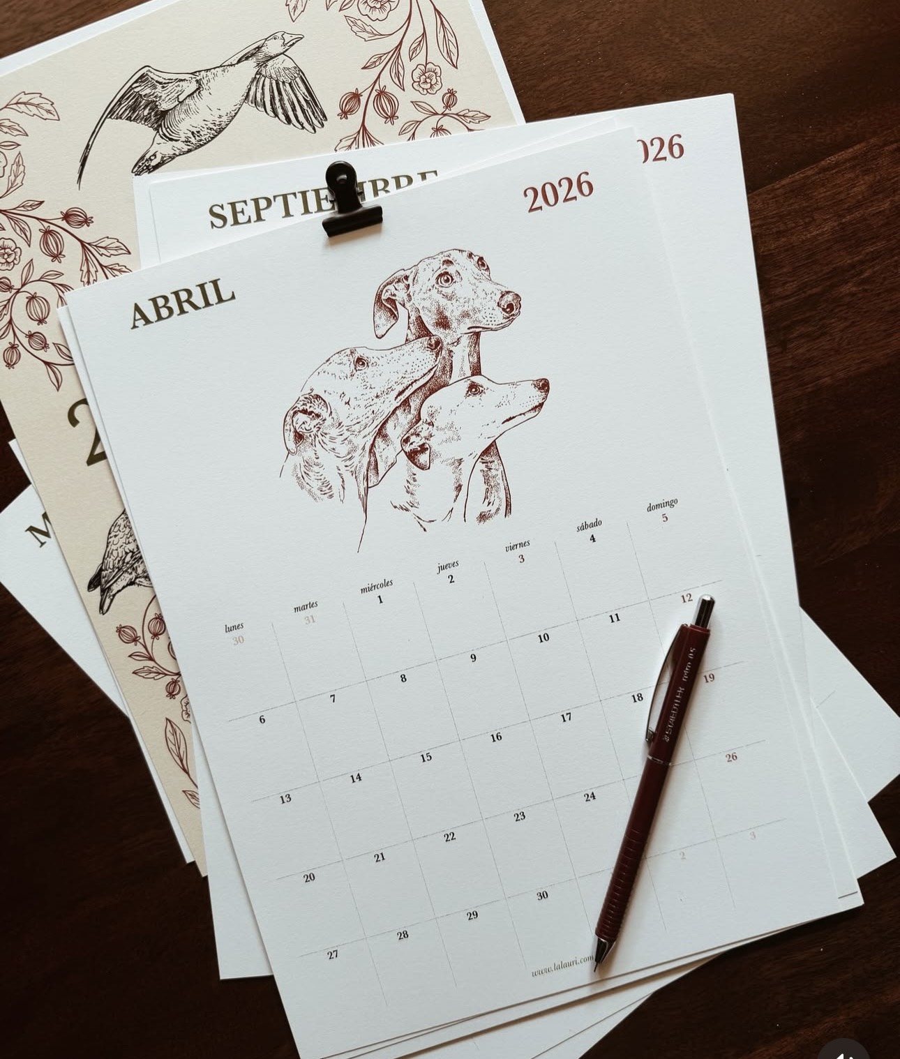 Calendario ilustrado de pared con espacio para notas, compuesto por 12 láminas mensuales, cada una cuidadosamente diseñada para alegrar tu espacio a lo largo del año