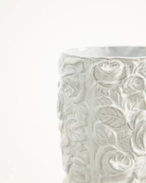 Astier de Villatte, devoto de la fabricación preindustrial, es reconocido por ser el único estudio de París que conserva y preserva las tradiciones de la producción artesanal de cerámica. Restaurando los sistemas ancestrales de moldeado y estampado, el jarrón Cambridge se elabora con técnicas de la Edad Media que consisten en moldear una lámina de arcilla artesanal, someter la pieza a doble cocción y esmaltarla con esmalte blanco, un proceso largo que requiere un tiempo de secado de hasta un mes. Caracterizado por sus motivos florales y un inconfundible acento británico el jarrón lleva grabado el escudo distintivo de la marca, que representa un entrelazado de A y V, junto a las iniciales de uno de los 40 maestros artesanos que lo crearon. Cada pieza artesanal cuenta con una hermosa historia, enamora y transmite nostalgia a su propietario. Combínalo con otros jarrones ornamentados de la colección para lograr un toque decorativo coordinado. La producción artesanal confiere a cada pieza de cerámica un acabado único.