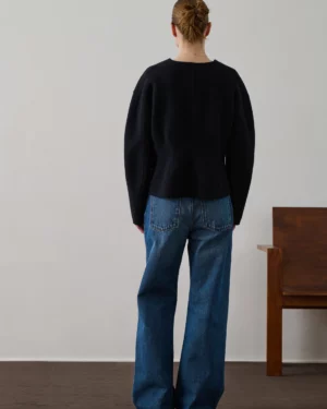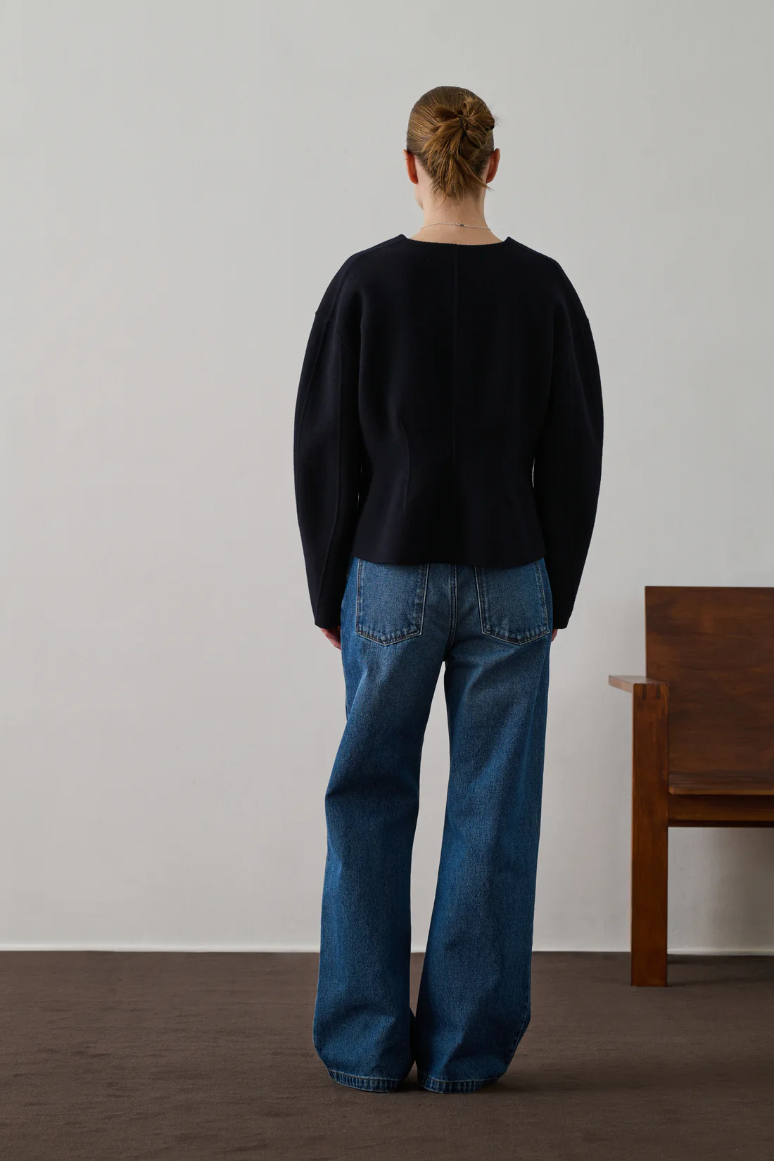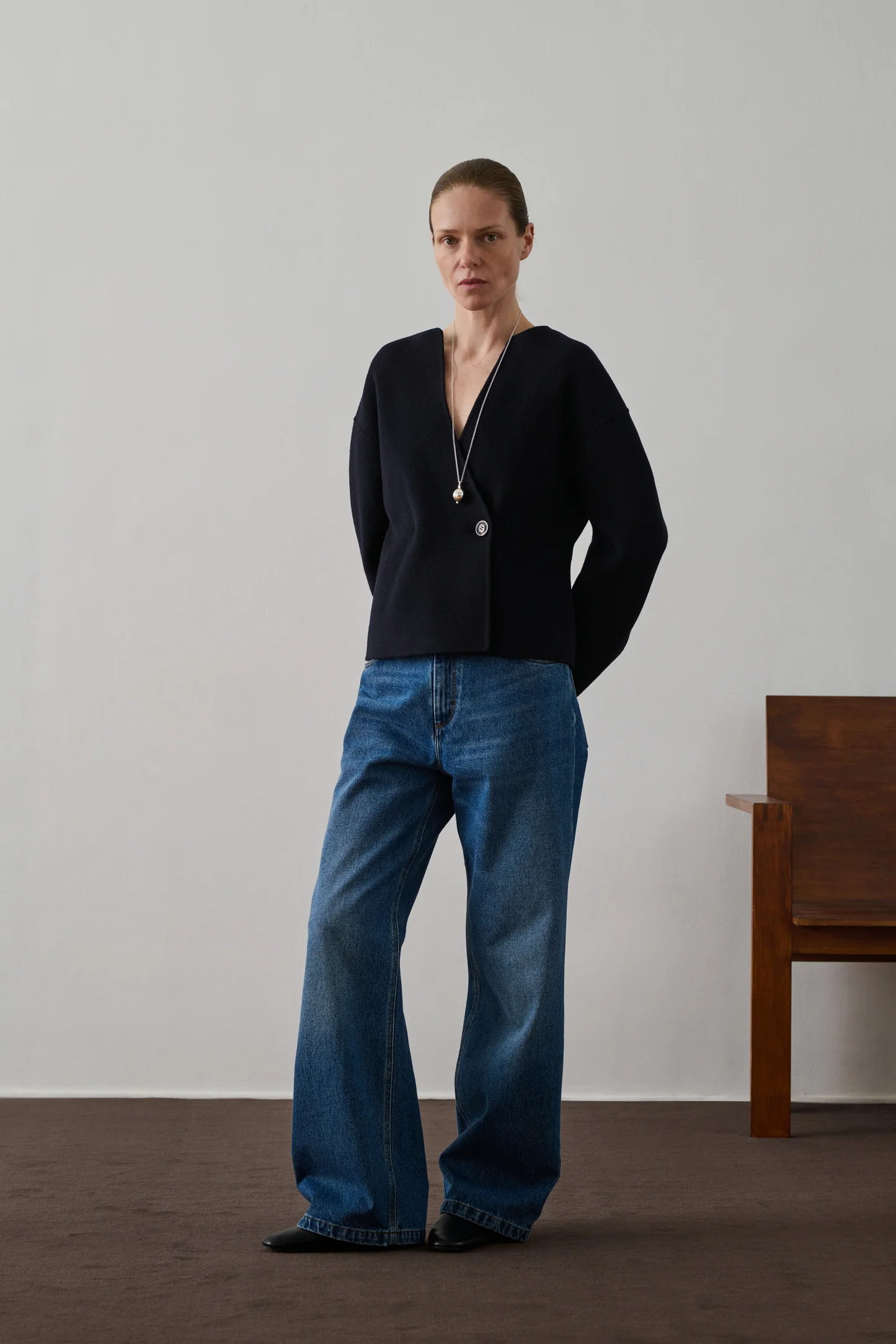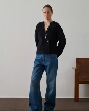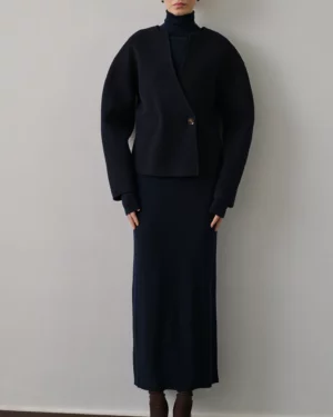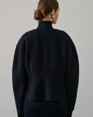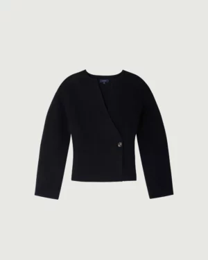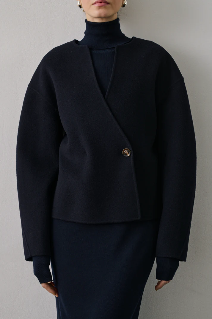 DREAM es una chaqueta corta estructurada. El corte entallado y la cintura marcada por un botón desplazado aportan elegancia. Esta prenda está confeccionada en lana doble faz cálida, suave y flexible. Una pieza que combina elegancia y confort