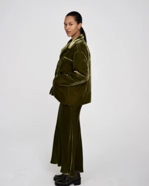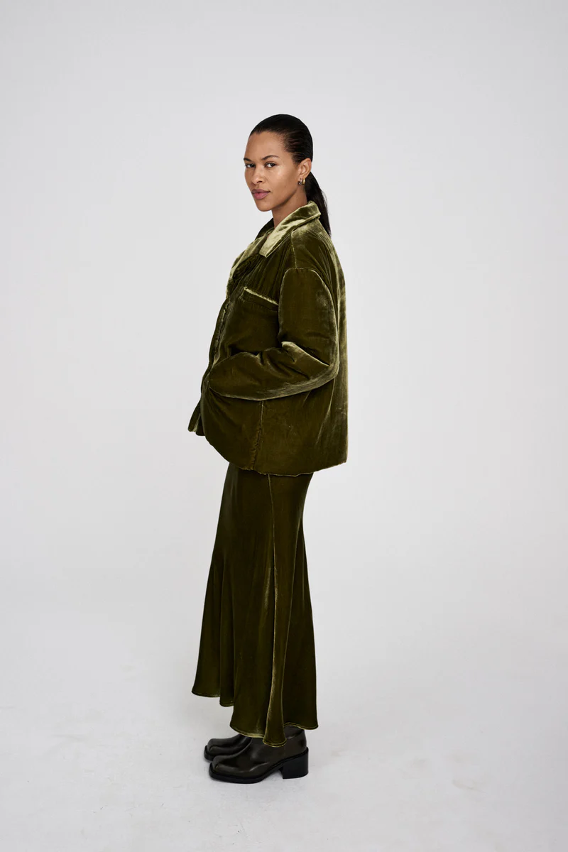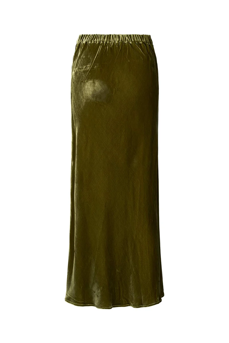 Esta favorecedora falda está confeccionada en suave terciopelo, aportando un toque de dramatismo y elegancia a tu look