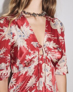 El vestido Flavie encarna la feminidad natural con un toque bohemio. Su corte fluido se mueve con ligereza y naturalidad, creando una silueta elegante y etérea