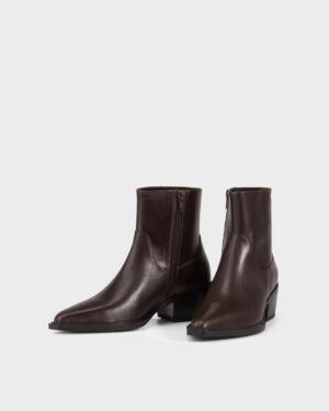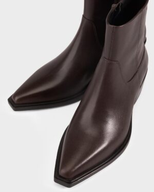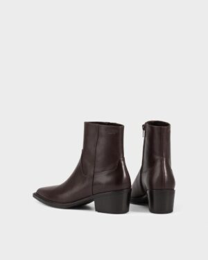 La Edition Kelsey presenta modelos básicos para el día a día, con sutiles toques de inspiración western. Los botines están confeccionados en cuero marrón oscuro.