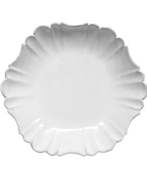 Los bordes festoneados añaden un toque de poesía parisina.Cada pieza de Astier de Villatte está hecha a a mano en París, utilizando técnicas preindustriales que se han transmitido de generación en generación. En lugar de porcelana la pieza se trabaja con terracota negra, un material más común para la escultura. Al estilo de los antiguos romanos, prensan la arcilla en formas con moldes de yeso, terminando con la aplicación de esmalte blanco brillante. La cerámica terminada muestra la mano del artista en sus formas irregulares y los leves destellos de terracota que se asoman a través de su acabado liso, celebrando que no haya dos piezas exactamente iguales. El plato sopero «Víctor» resulta perfecto para el uso diario y exquisito para coleccionar