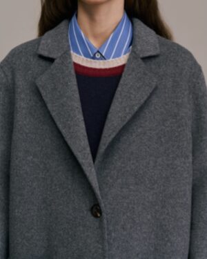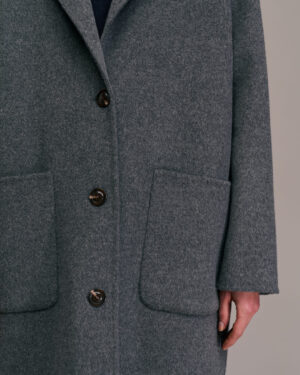 Abrigo con cuello de solapas y mangas largas. Bolsillos de parche. Cierre de botones en la parte delantera