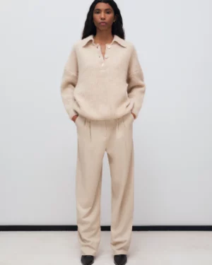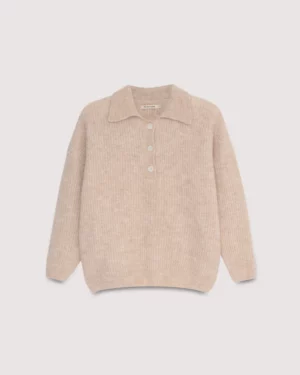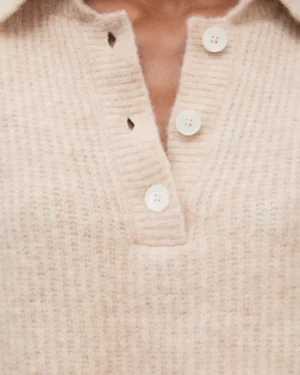Un refinado polo de punto de lana confeccionado con hilo de alta calidad, con tapeta frontal y botones a juego. Diseñado para un look clásico y elegante, con un tacto suave y cómodo, perfecto para llevar en capas o solo