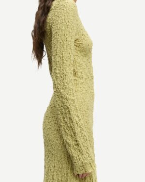 Vestido texturizado de manga larga, corte ajustado y falda acampanada