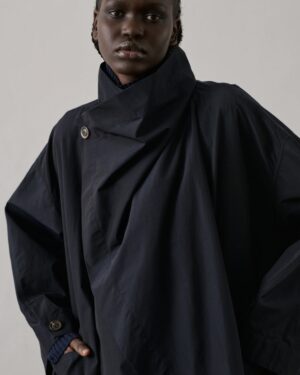 Su cuello amplio y extragrande crea un efecto drapeado, ajustable a voluntad, para un look de alta costura. La lona de algodón nítida le aporta estructura. SIn forro y repelente al agua, esta gabardina ligera y perfecta para los días de lluvia