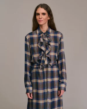 Vestido de manga larga con pechera de volantes